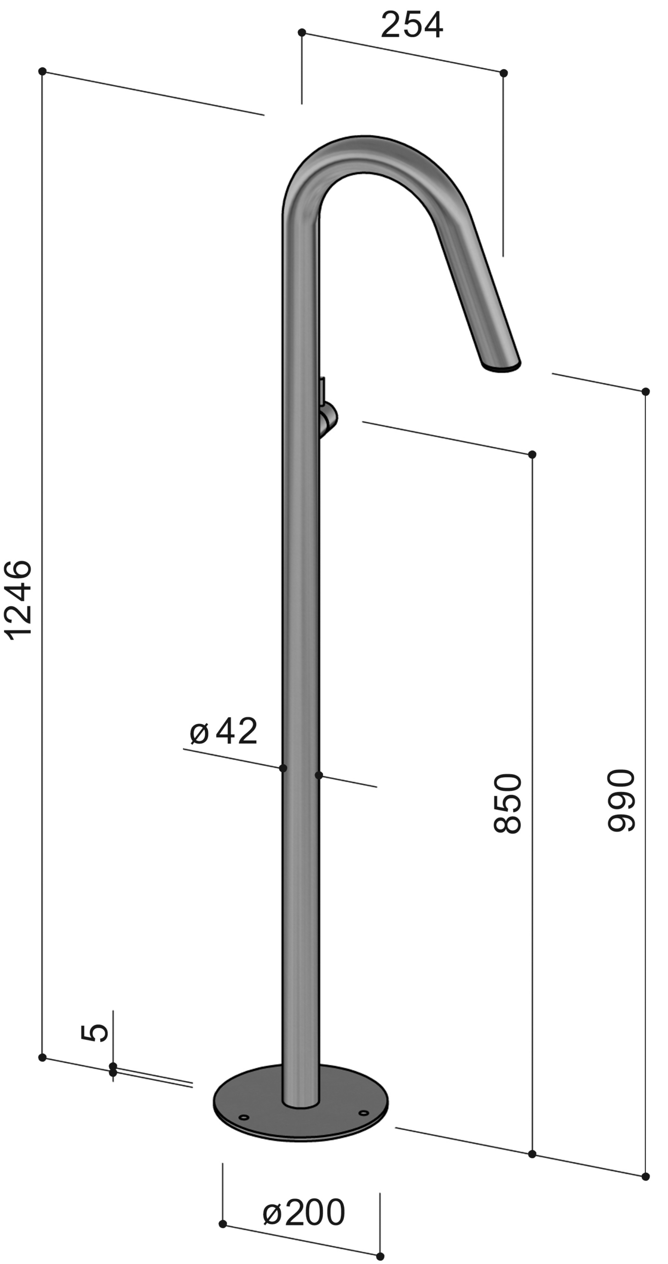 Fijación al suelo por medio de varillas, tuercas, tapas y arandelas, todo en acero inox Aisi 316